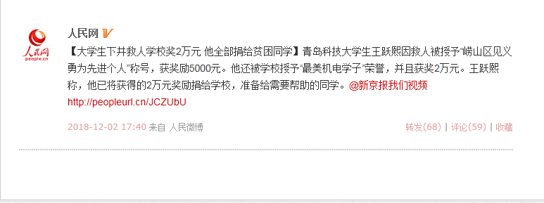 人民微博报道永利yl23411no1王跃熙见义勇为事迹:网址:新京报我们视频http://peopleurl.cn/JCZUb