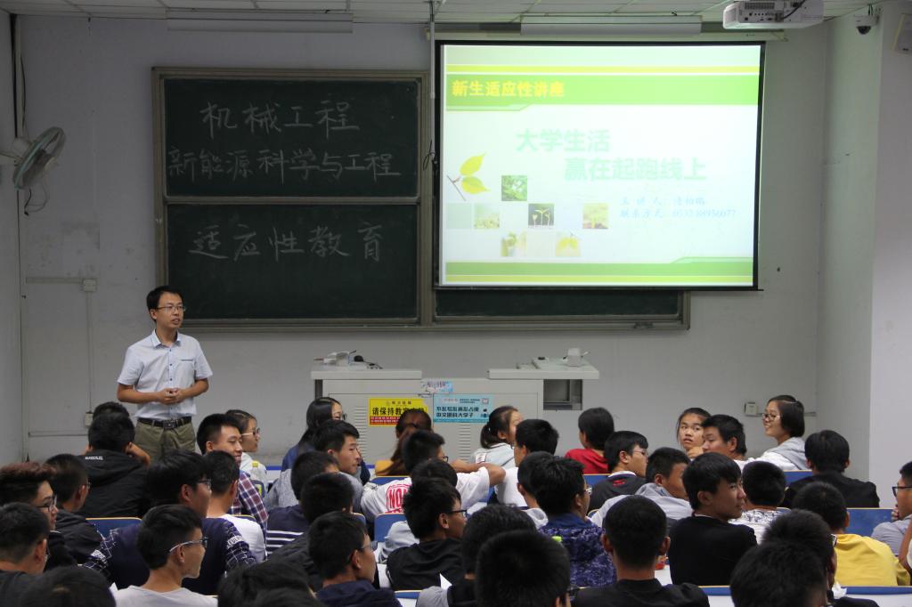 在新生适应教育讲座上,逄柏鹏以“大学生活——赢在起跑线上”为题,围绕新生心理、新生适应、求助途径和中心简介四大板块图文并茂地给同学们以整体辅导,其中还结合自己经历、真实案例,教育和引导同学们在大学四年这“起承转合”的每一阶段,要从环境、学习、人际和心理等方面学会适应与学会规划。