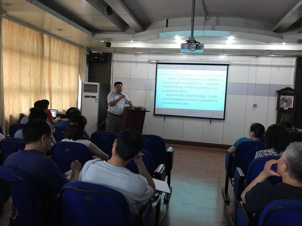 7月11日下午,应学院邀请,财务处处长刘天真携财务处工作人员一行5人和协同办公平台系统(简称OA系统,下同)工程师2人一同来到永利yl23411no1举办培训会,永利yl23411no1全体教职工参加了培训会。