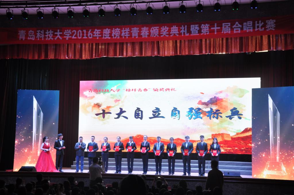 为纪念五四运动98周年,发挥榜样力量,弘扬五四精神,展现青年风采,5月2日,青岛科技大学2016年度榜样青春颁奖典礼暨合唱比赛在四方校区西礼堂举行,校领导刘兴云、张元利、韦殿华、姚锋、陈克正、吕万翔,学校机关部门、各学院有关负责人和千余名青年学生齐聚一堂,感受了科大青年的青春风采和蓬勃朝气。