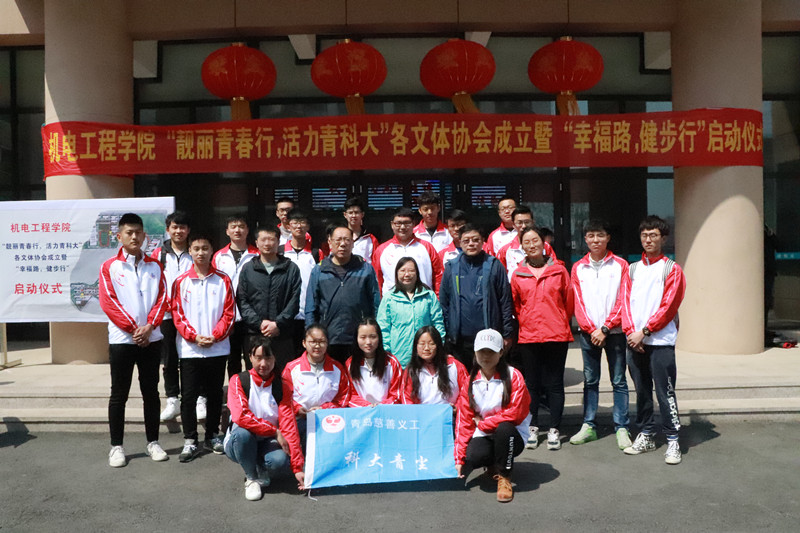 为进一步贯彻落实“活力青科大”教职工体育艺术文化节的活动宗旨——“强健体魄、健康生活、快乐工作”,永利yl23411no1本着为学院教职工添活力、增生机的目的,4月17日下午,在崂山校区举行了“靓丽青春行,活力青科大”各文体协会成立暨“幸福路,健步行”启动仪式。青岛科技大学工会主席郭曰铎,永利yl23411no1院长何燕、党总支书记孙立军,副院长郭建章、张斌、杨化林,党总支副书记兼副院长王伟参加了此次活动。活动由永利yl23411no1分工会主席付平主持。