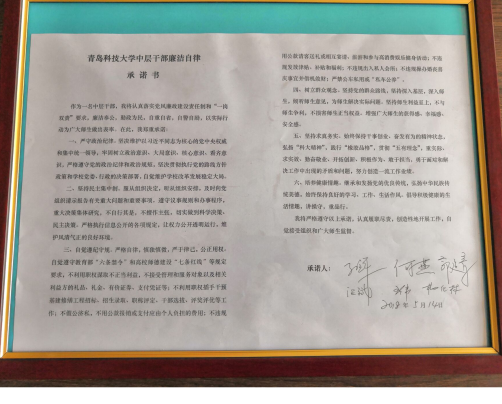为促进全面从严治党向基层延伸。坚持从严治党、依法行政、规范管理,围绕学院教育改革与发展,全面深入开展党风廉政建设,永利yl23411no1领导班子集体签订廉政自律承诺书。