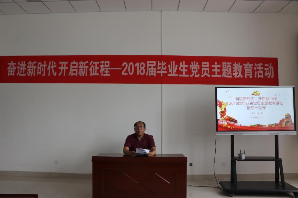 6月22日下午,永利yl23411no12018届毕业生党员最后一次党课在永利yl23411no1楼529会议室举行,党课由永利yl23411no1党总支书记孙立军主讲,学生第一党支部书记王作辉主持。60多名2018届毕业生党员参加了党课活动。