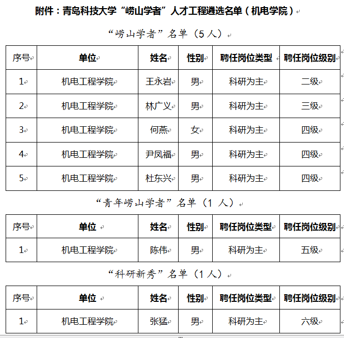 近日,学校公布青岛科技大学“崂山学者”人才工程遴选公示名单,永利yl23411no17名老师榜上有名,王永岩、林广义、何燕、尹凤福、杜东兴5名老师获“崂山学者”荣誉称号;陈伟老师获“青年崂山学者”荣誉称号;张猛老师获“科研新秀”荣誉称号。