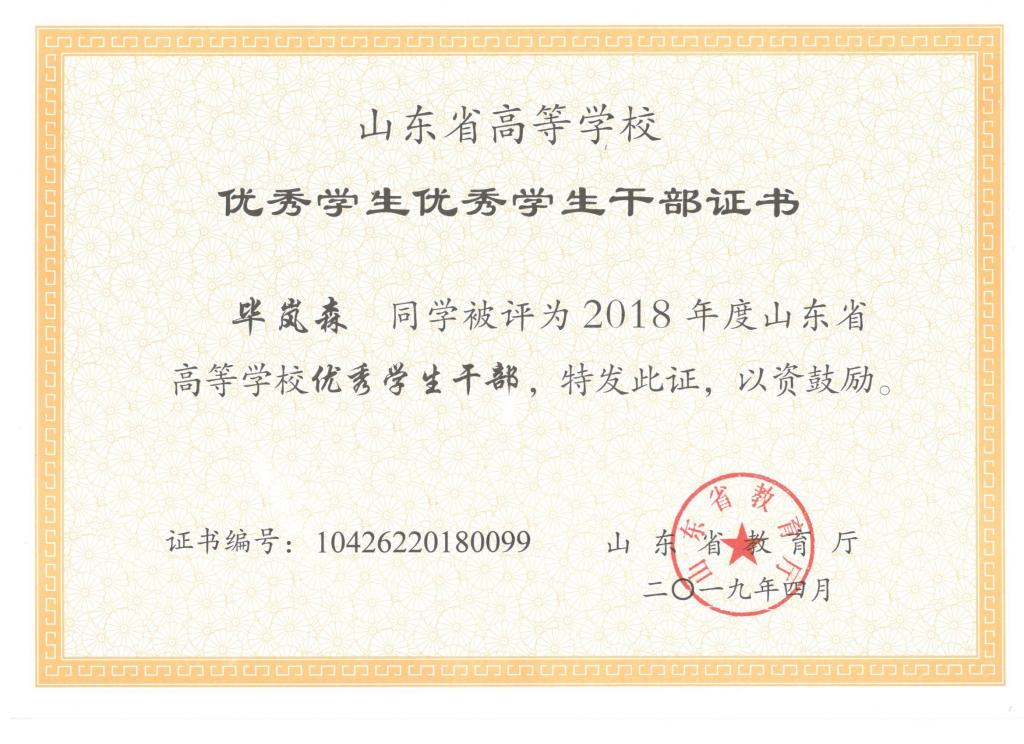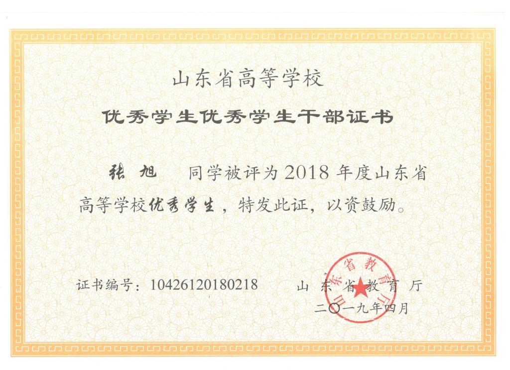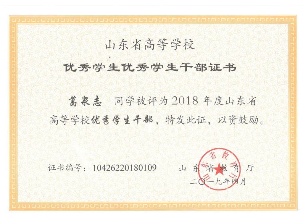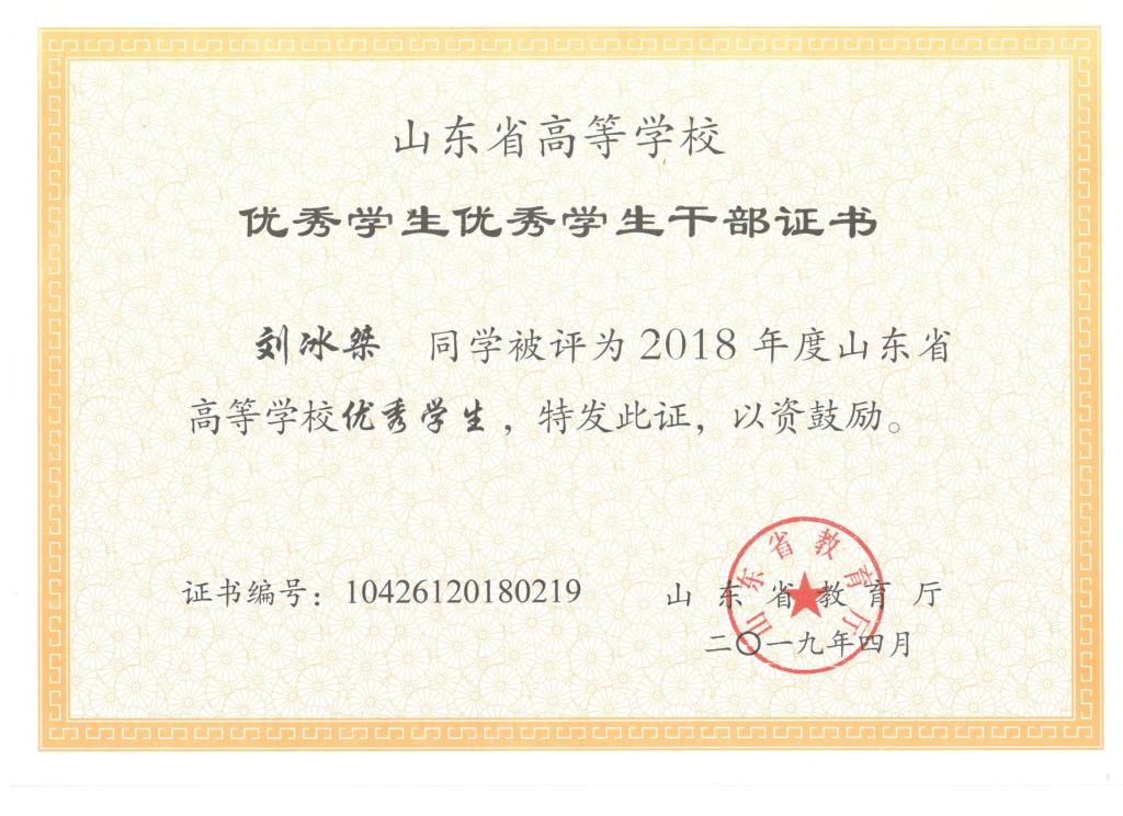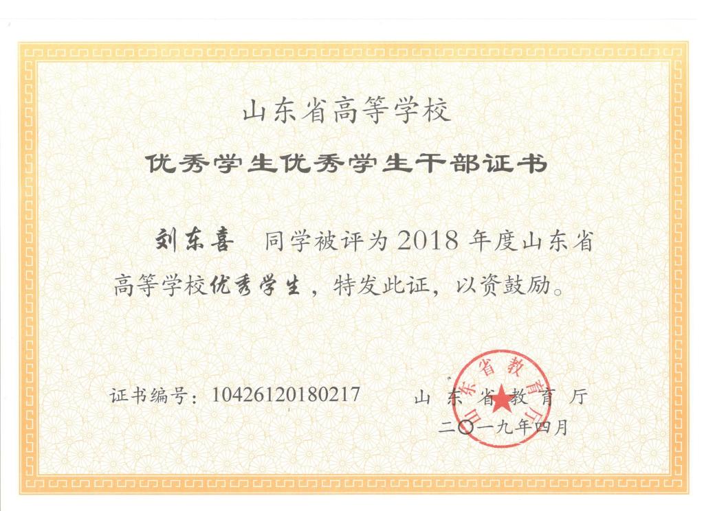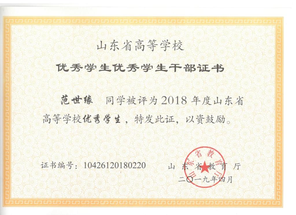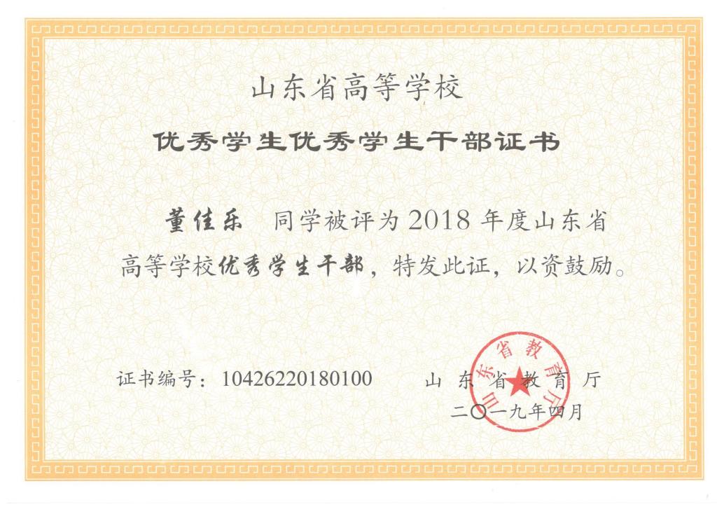 近日,山东省教育厅发布了《关于公布2018年度高等学校优秀学生优秀学生干部和先进班集体评选结果的通知》。永利yl23411no17名学生和1个班集体获2018年度省级优秀学生、优秀学生干部和先进班集体荣誉称号。