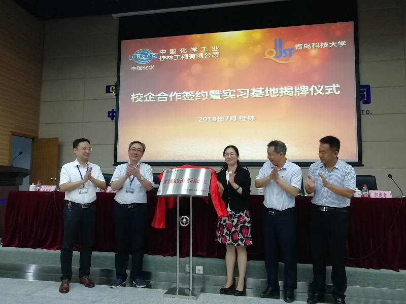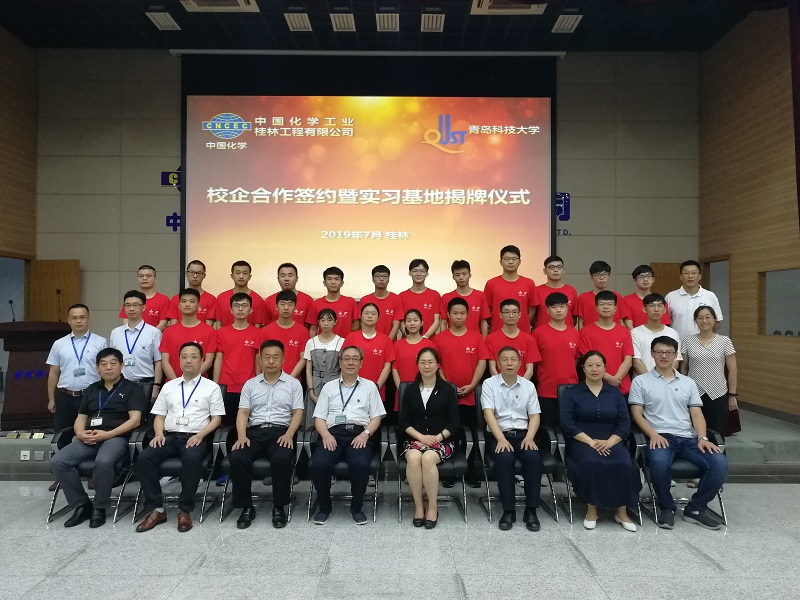 7月23日,永利yl23411no1与中国化学工业桂林工程有限公司隆重举行校企合作签约暨实习基地揭牌仪式。中国化学工业桂林工程有限公司党委书记王东明、副总经理顾兴元、张旭东及永利yl23411no1院长何燕、副院长郭建章出席本次会议。参加会议的还有青岛科技大学的选送实习的师生们以及中国化学工业桂林工程有限公司有关部门负责人。