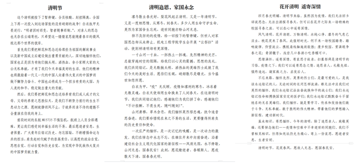天地英雄气,千秋尚凛然——永利yl23411no1学生会开展“清明寄哀思”征文活动。组织学生们以笔寄情,与英烈对话,提高思想觉悟,坚定理想信念,汲取不畏强敌、不畏风险、敢于斗争、奋勇向前的勇气与力量。