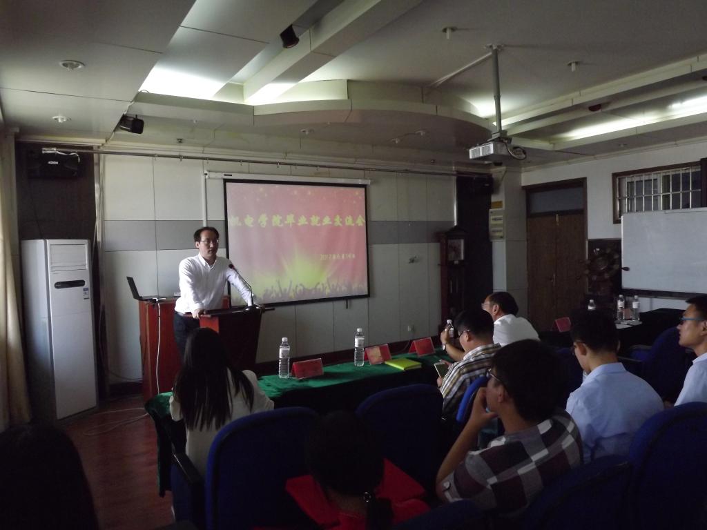 6月14日下午3:30,在机电五楼大会议室举行研究生毕业就业经验交流会。永利yl23411no1党总支书记孙立军老师、党总支副书记兼副院长王伟老师、永利yl23411no1李剑光老师及14级优秀毕业生代表、15、16级研究生参加本次交流会。