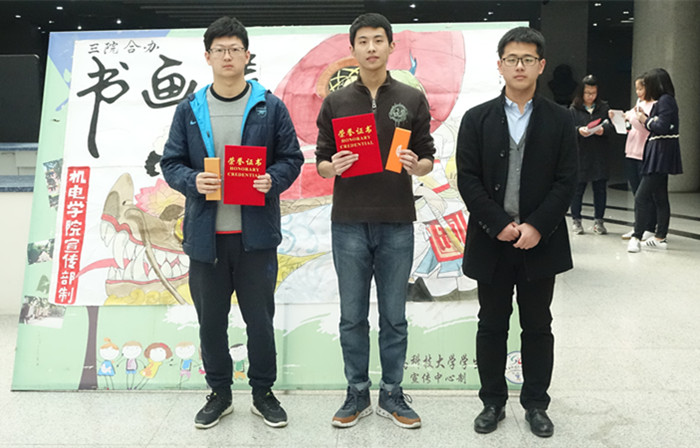 3月14日下午2:00,由永利yl23411no1、传播与动漫学院、法学院三个学院合办的主题书画展颁奖典礼在崂山校区图书馆二楼大厅举行。永利yl23411no1分团委老师曲智强亲临现场,为本次获奖同学颁奖。
