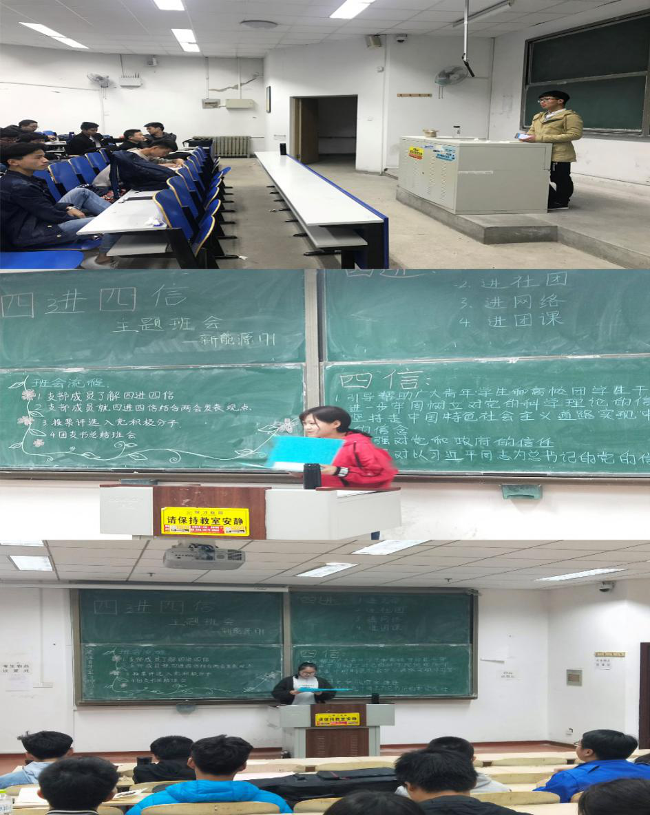 活动把学习宣传贯彻习近平新时代中国特色社会主义思想和党的十九大精神作为首要政治任务和核心工作业务,永利yl23411no1分团委组织部扎实推进“四进四信”活动,切实以“四进”增强“四信”,以“四信”促进“四进”,各级团学组织深入开展了“四进四信”与全国两会主题班会。