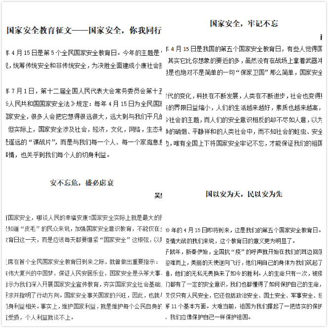 永利yl23411no1以“青年与国家安全”为主题,组织开展征文比赛,结合学生对于国家安全的所思所想,加强思想交流和碰撞,择取部分优秀文章在微信、QQ空间等平台展示。