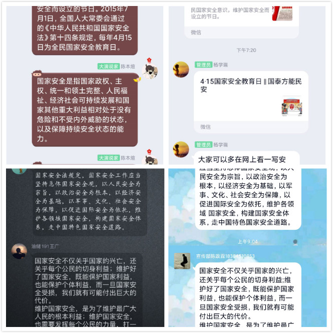 永利yl23411no1结合疫情防控工作,以国家安全教育为主题组织各班级、团支部召开 “云”班会、线上主题团日活动,组织在班级群内探讨国家安全知识,做到互学互帮互促,提升学生的国家安全意识。