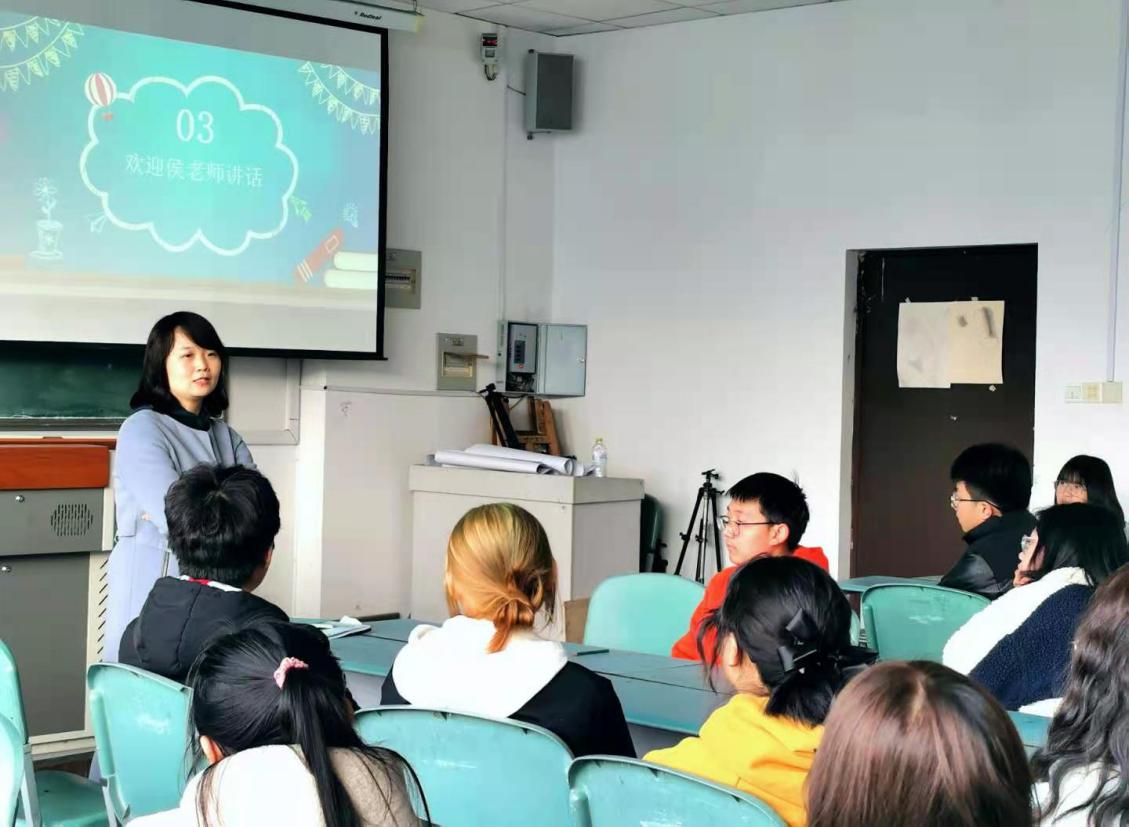 会议伊始,同学们逐个进行了简短的自我介绍,并且由班长姜俊岐同学大体介绍了班级的工作情况,候老师细心指出同学们自我介绍课件中存在的小问题,提出了自己的宝贵建议。